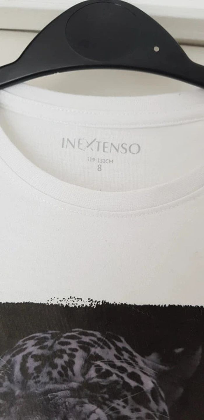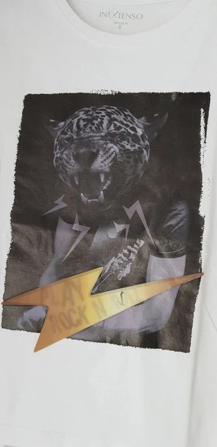Tee-shirt manches longues blanc avec flocage panthère 🐆🎸 rock'n'roll parfait, seul une petite tâche pas très visible sur le coude voir photo - T. 8 ans - TRÈS BON ÉTAT. #alupineteeshirtgarcontaille8ans #teeshirtgarcon8ans #teeshirtmancheslonguesgarcon8ans #teeshirtinextensogarcon8ans #inextensogarcon8ans #inextenso