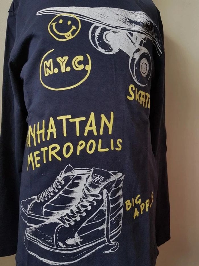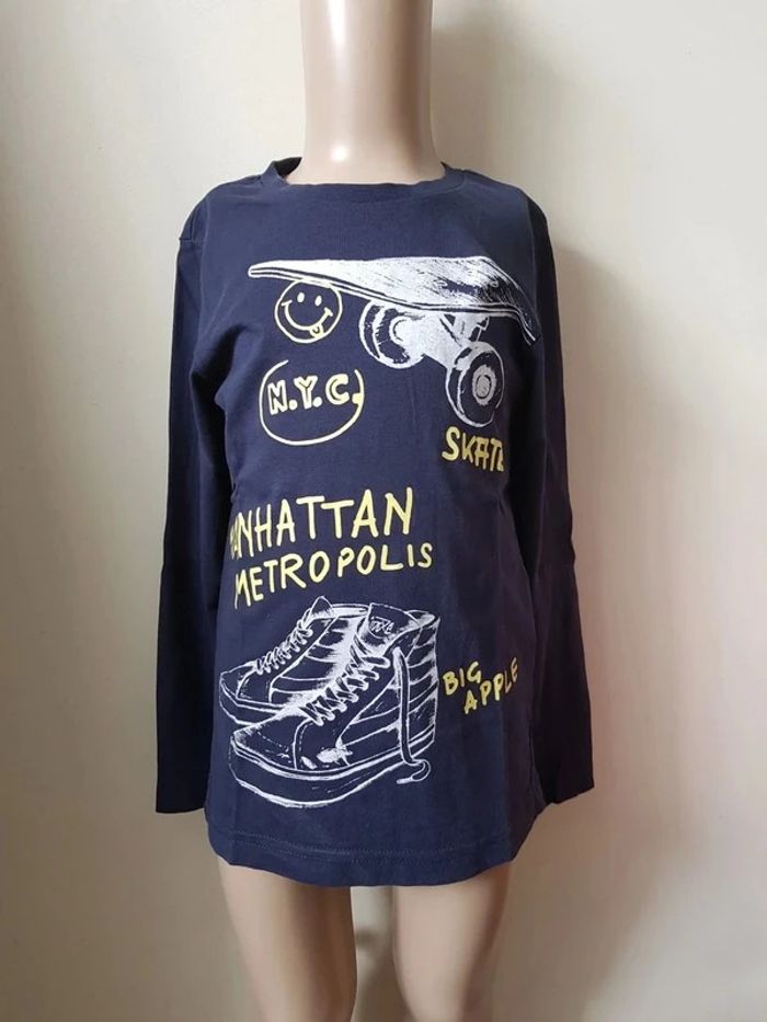 Tee-shirt manches longues bleu marine 🛹 pour les fans de skate 🛹 Flocage en très bon état - T. 4/5 ans - TRÈS BON ÉTAT. #alupineteeshirtgarcontaille4ans #teeshirtmancheslonguesgarcon4ans #teeshirtmancheslonguesgarcon5ans #teeshirtgarconskate4ans5ans #teeshirtgarconidexe4ans #teeshirtgarconidexe5ans #idexegarcon4ans #idexegarcon5ans #idexe