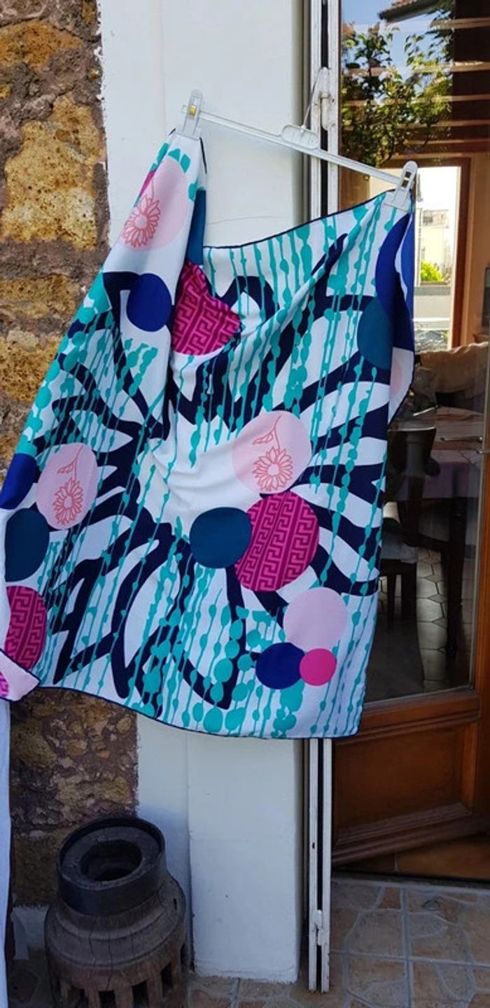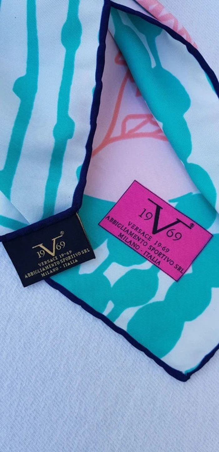 Très joli foulard 90x90 blanc, vert... - NEUF. #alupineaccessoiresfemme #alupinefoulardfemme #foulardcarre #foulardcarre90 #foulardversace1969 #foulardcarreversace #versace