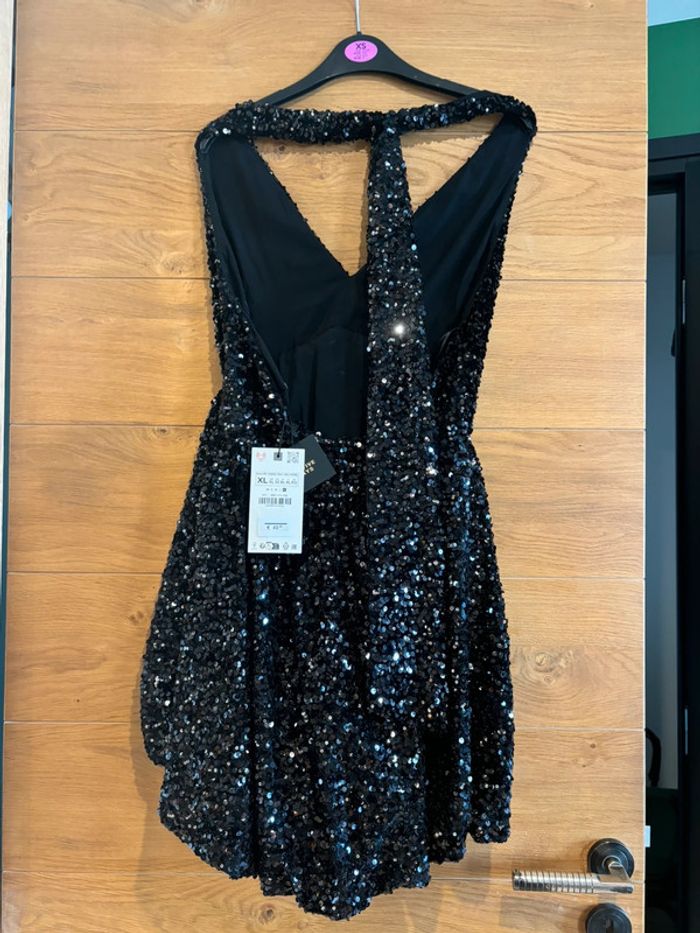 Robe noire ZARA dos nue à paillettes, jamais porté en très bon état. Acheté en magasin mais la taille ne me correspond pas. Taille XL Prix négociable
