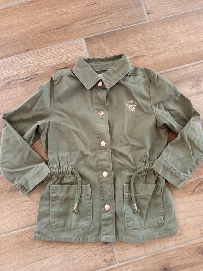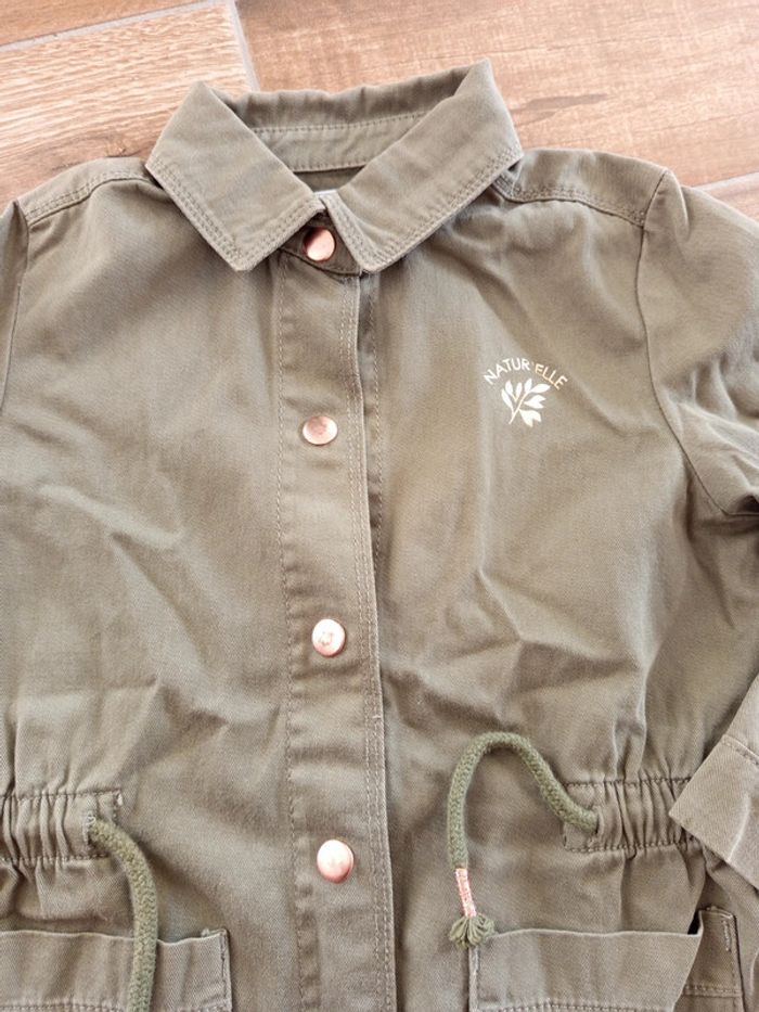 Veste fine/ saharienne kaki Gémo 5 ans Peu portée, très bon état fermeture pressions dorées , peut être resserrée a la taille