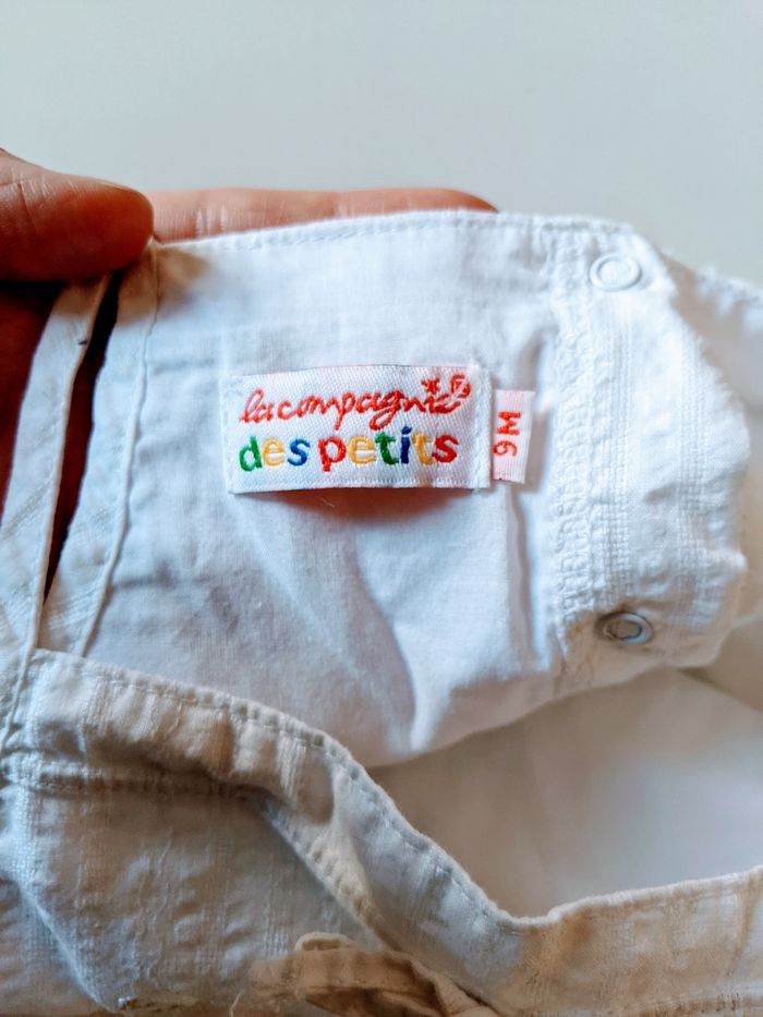 Robe bain de soleil blanc gaze coton 9 mois 71 cm la compagnie des petits Robe en coton, doux, léger et doublée, idéale pour les beaux jours. Broderie ton sur ton, fleur. Tissu texturé : léger relief très joli cf photos. La compagnie des petits, 9 mois 71 cm Comme neuf, portée 1 fois #yipin_bebe_9mois_fille #yipin_bebe_9mois