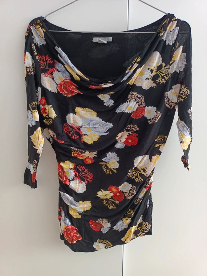 T-shirt noir fleurie h&m M, en très bon état, propre, maison non fumeur. Voir photos. #m_djlaurita -40% sur les lots