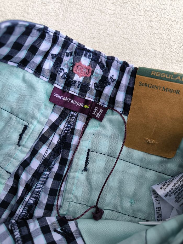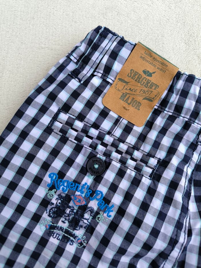Short/Bermuda Marque Sergent Major Taille 3 ans, 98 cm • Coloris marine, blanc, turquoise • Coupe regular • Imprimés carreaux/Vichy • Fermeture par fermeture éclair et crochet • Taille élastique ajustable • 4 poches • Tissu fin Neuf #evelyne_garcons_3ans #evelyne_garcons