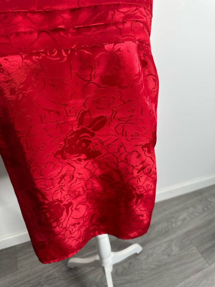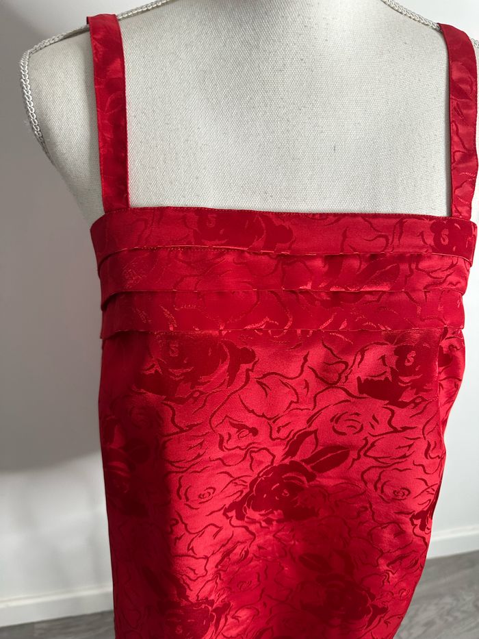 Débardeur - Excellent état - Taille 40 équivalent L Dimensions en bas de l’annonce - Couleur rouge - Imprimés fleurs, roses - Style Y2K - Vintage, années 80’ - Élastique à l’arrière - 100% polyester Dimensions: - 40 à 46cm niveau aisselles - 64cm de long