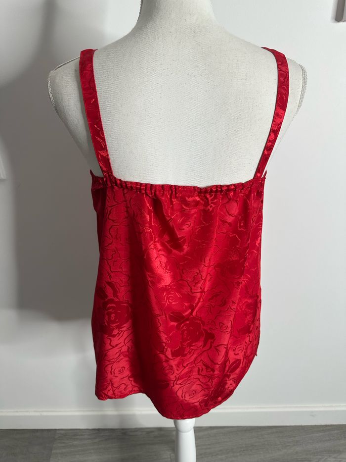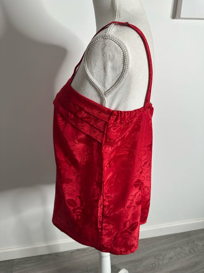 Débardeur satiné fleurs rouge Y2K Vintage T40 L - photo numéro 4
