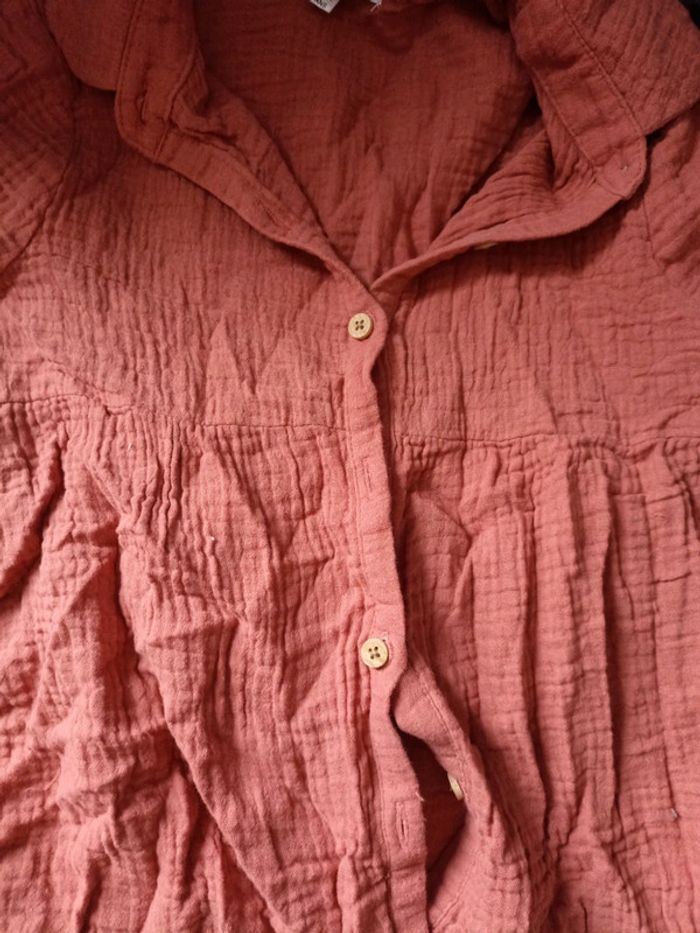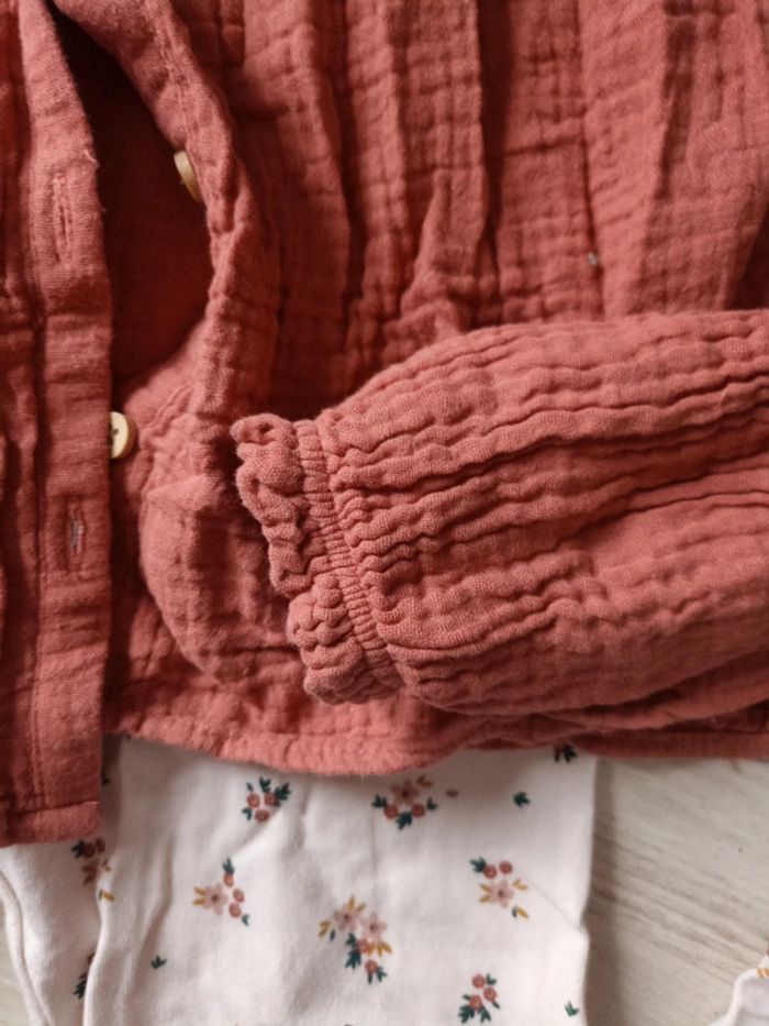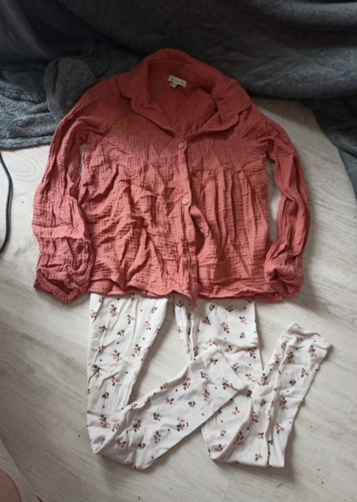 Ensemble composé d'une chemise en gaze de coton vieux rose se ferme par bouton effet bois Et d un leggings fleuri #mlledrey529ansfille