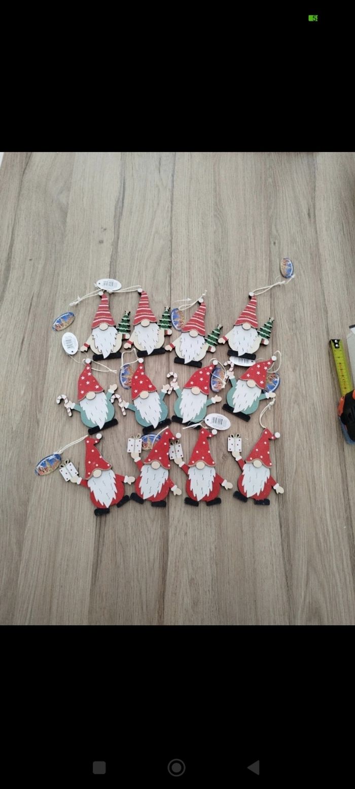 Lot de 12 décorations de sapin en bois. Neuves avec étiquettes.