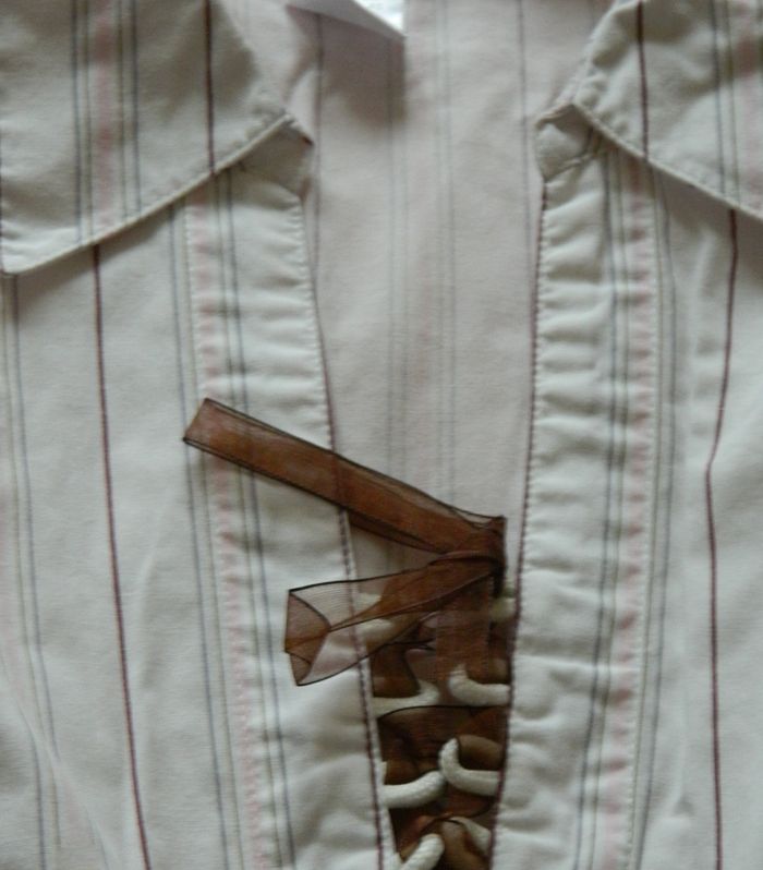 Chemisier sans manches blanc rayé taille 40 EN TRÈS BON ÉTAT // JOLI CHEMISIER QUI SE FERME DEVANT PAR LAÇAGE RUBAN // COTON longueur milieu dos 53 cm largeur poitrine à plat 44 cm