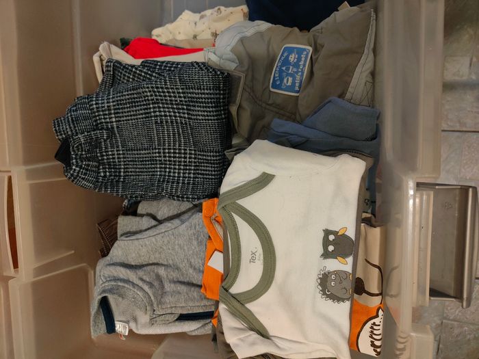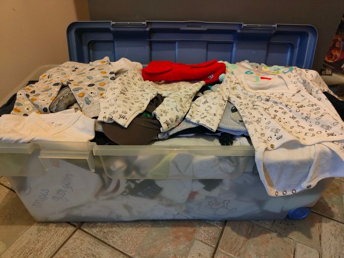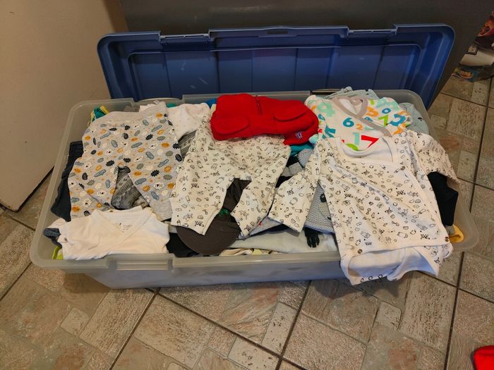 Lot de vêtements garçon de 1 mois a 3 mois (Et j'ai aussi de 6 mois a 12 mois. 40€) Vous y trouverez de tout. Les vêtements ont été portés par bébé donc peuvent contenir qq tâches de bébé