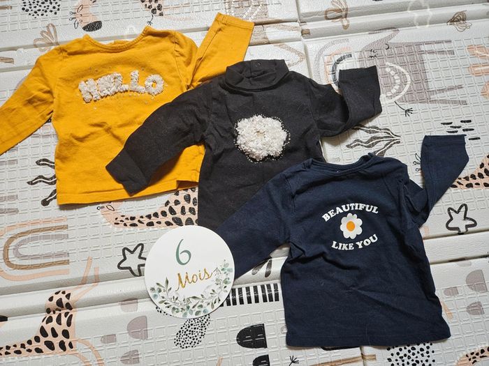 Lot 3 t-shirts manches longues 6 mois