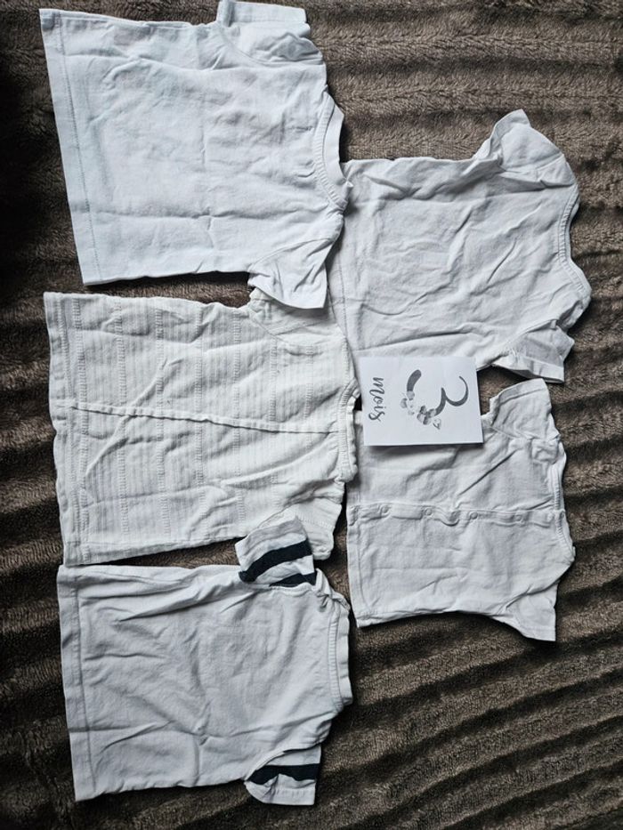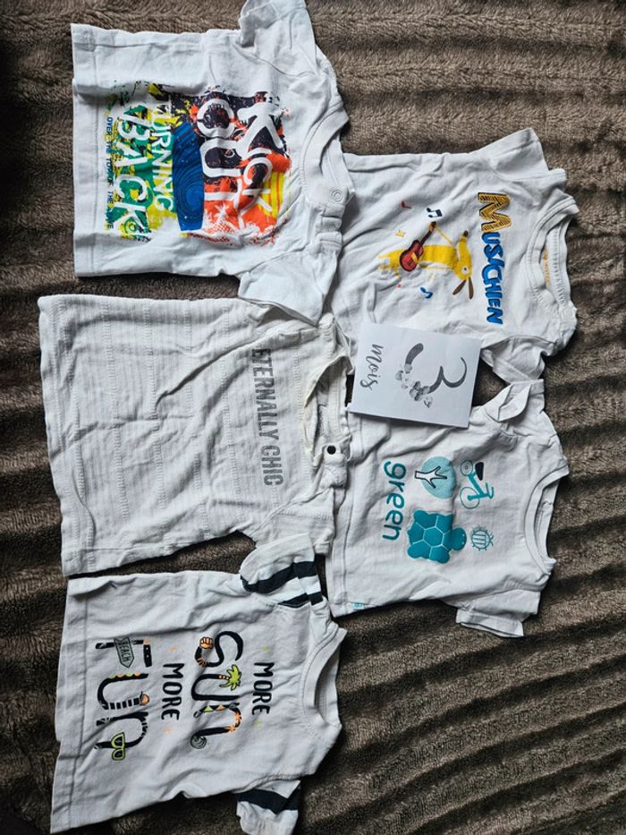 Lot 5 t-shirt blanc manches courtes à motifs garçon 3 mois - photo numéro 2