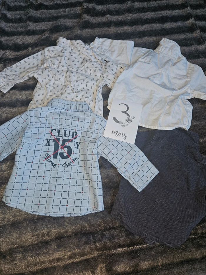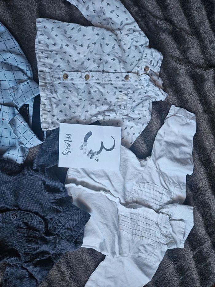 Lot 4 chemises manches longues garçon 3 mois - photo numéro 3