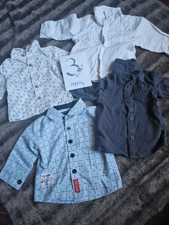 Lot 4 chemises manches longues garçon 3 mois - photo numéro 1