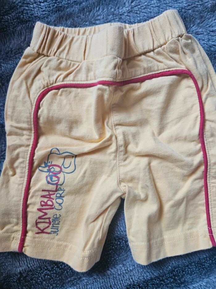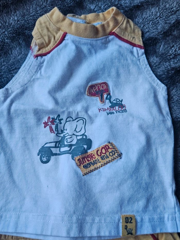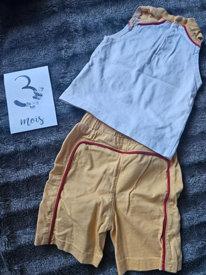 Ensemble comprenant 1 t-shirt débardeur blanc et 1 short jaune. Marque Kimbalo