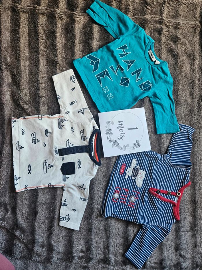 Lot t-shirt manches longues garçon 1 mois - photo numéro 1