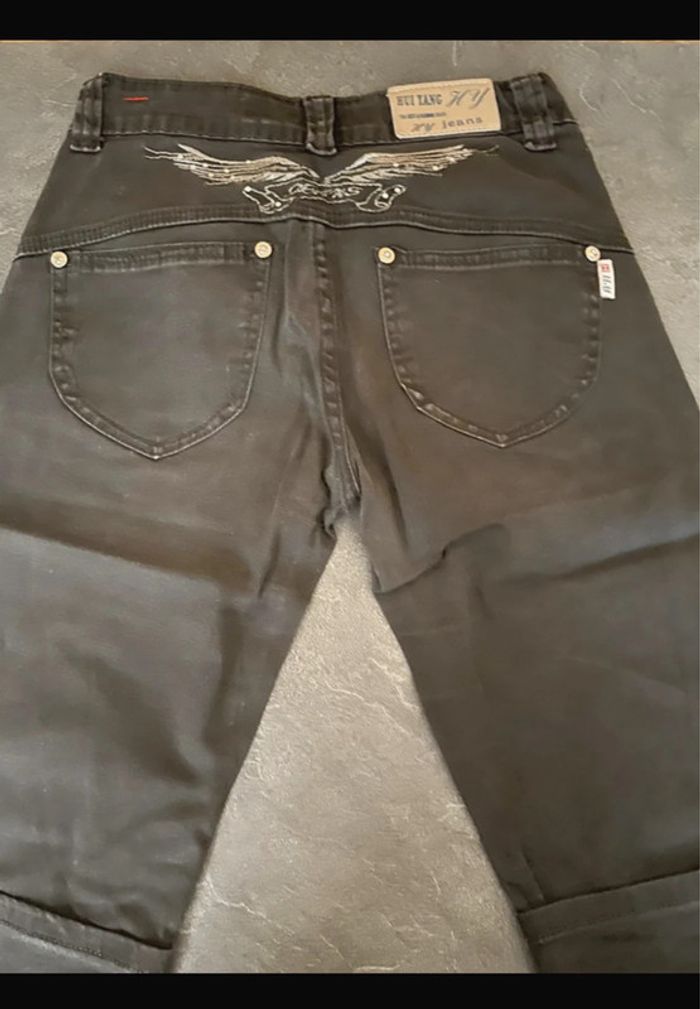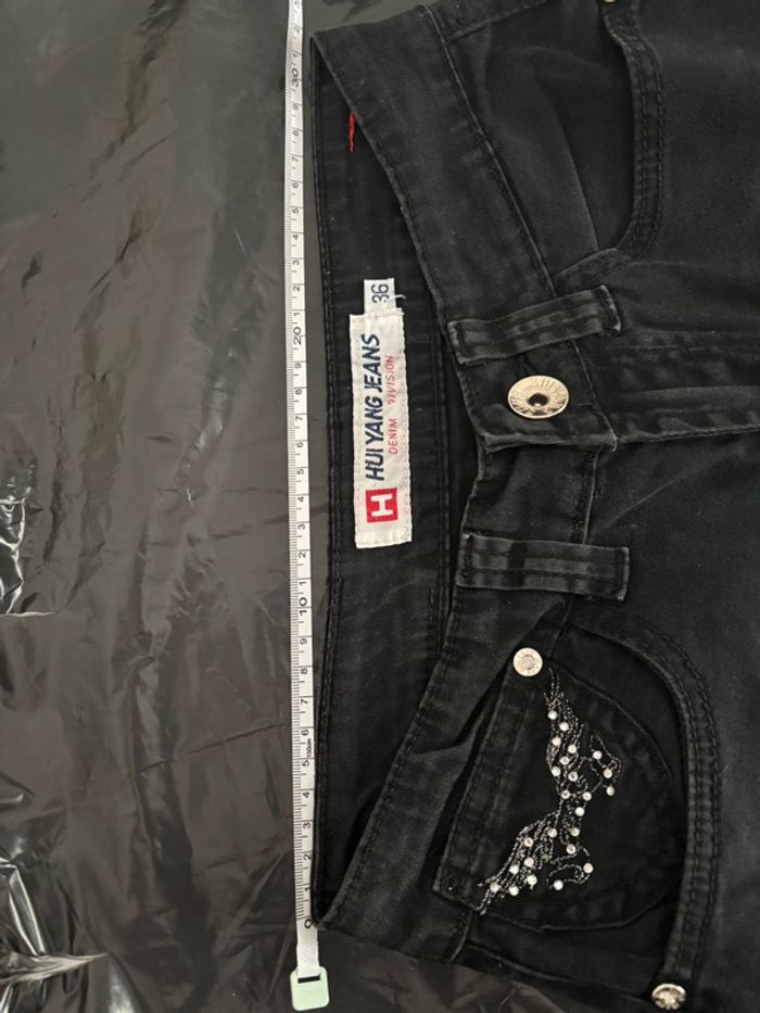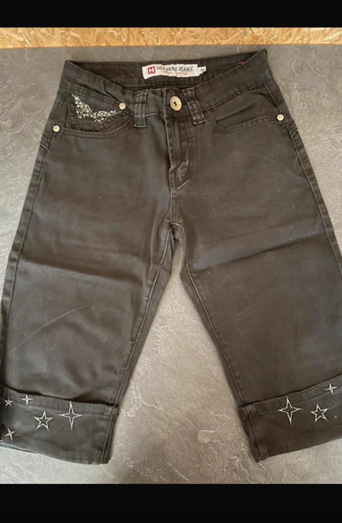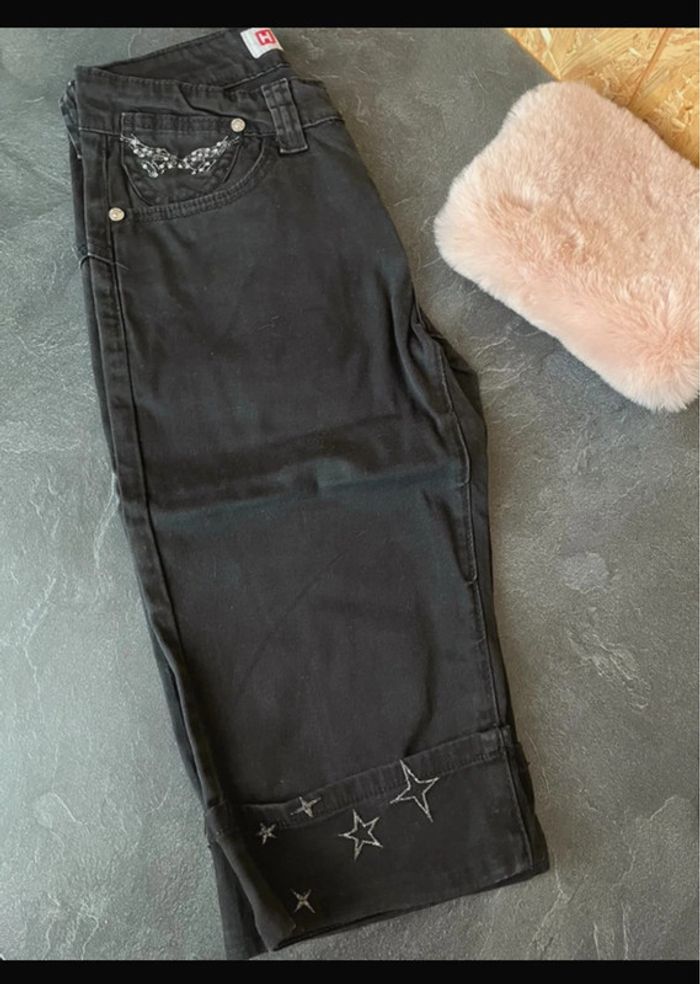 Pantacourt noir en matière jean léger, stretch confortable et parfait pour la mi-saison. En bon état général. Motifs papillons discrets sur la poche avant et broderies étoiles sur le bas. Taille 36. Ailes brodées arrière pantalon . Vintage Dimensions 55 cms de la ceinture au bout de pantacourt cf photos #pantacourt #jeanléger #taille36 #modefemme #lookvintage #stylevintage #vintageaddict #retrostyle #broderie #motifspapillons #starsdetails #secondevie #slowfashion #vintedfind #pièceunique #vintagestyle