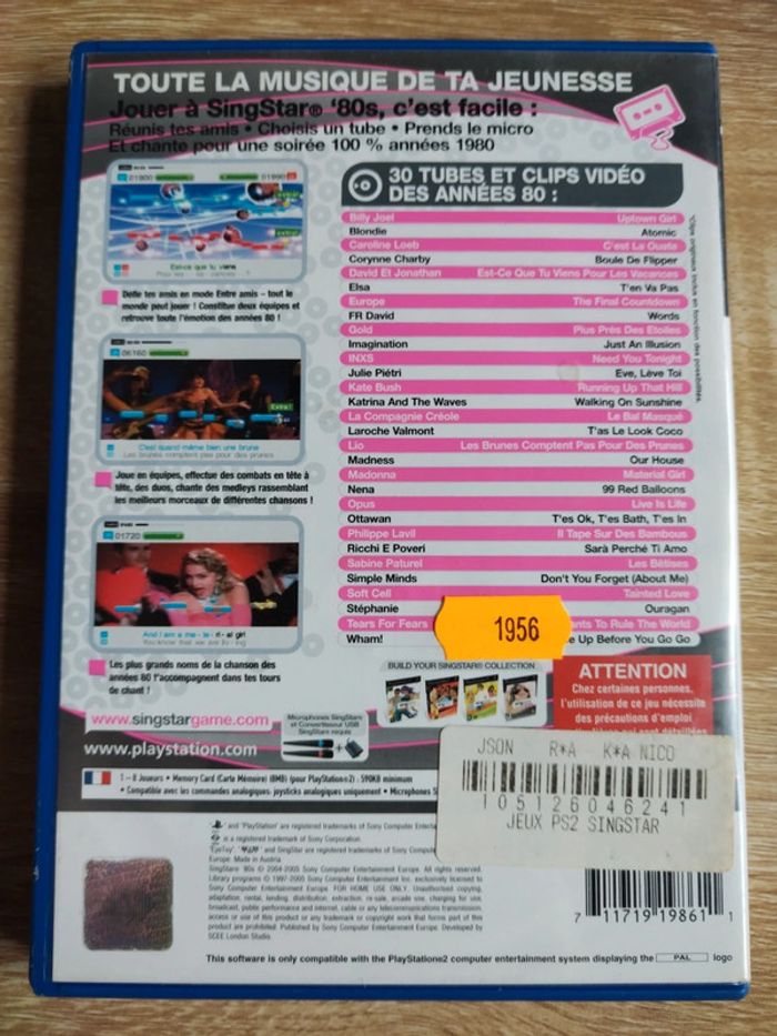 Jeu ps2 Singstar 80 Testé et fonctionnel
