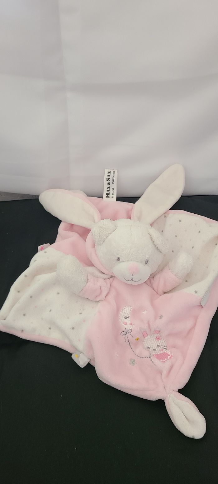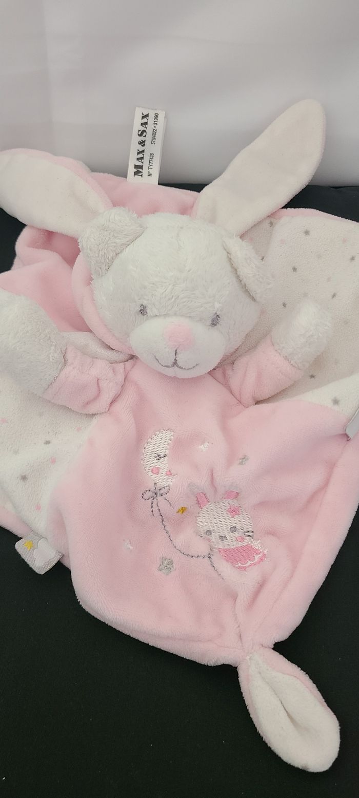 Max & Sax Doudou plat lapin rose blanc étoile lune - photo numéro 1