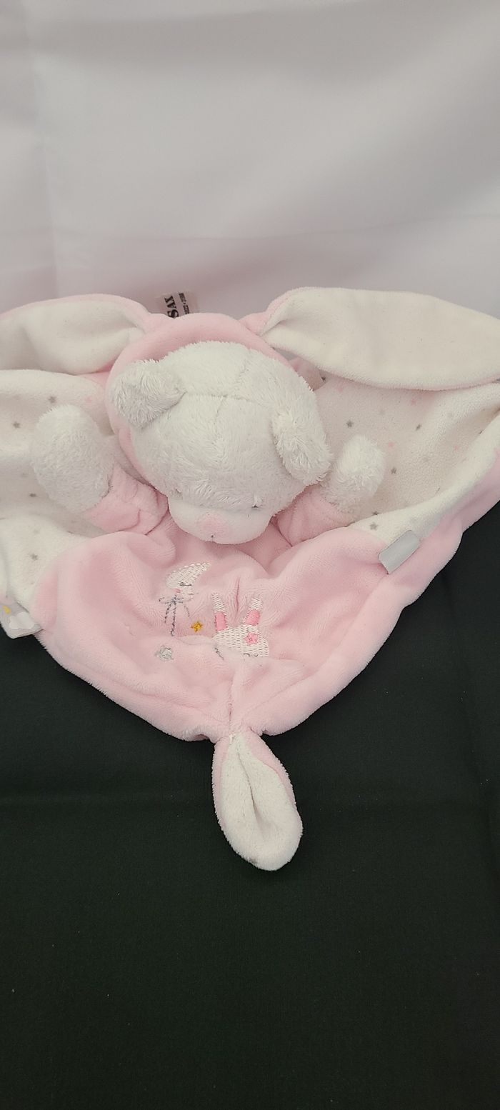 Max & Sax Doudou plat lapin rose blanc étoile lune - photo numéro 5