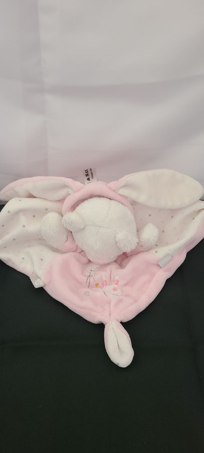 Max & Sax Doudou plat lapin rose blanc étoile lune - photo numéro 4