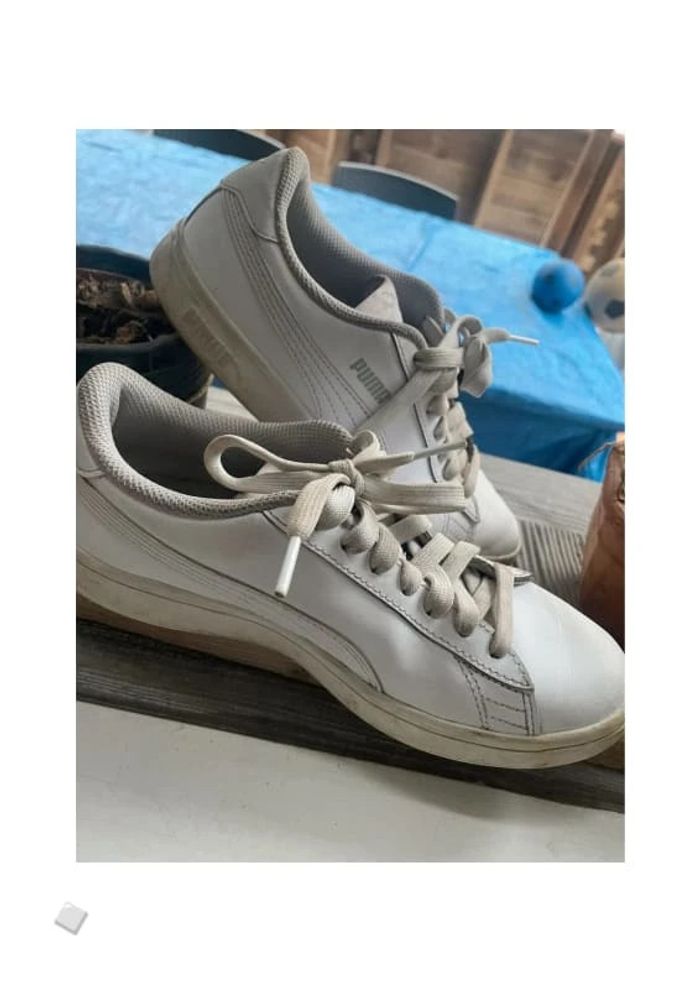 Baskets simple basses blanches à lacets puma Quelques petites traces d’usure #jennyspearschaussurefemme #jennyspearschaussure