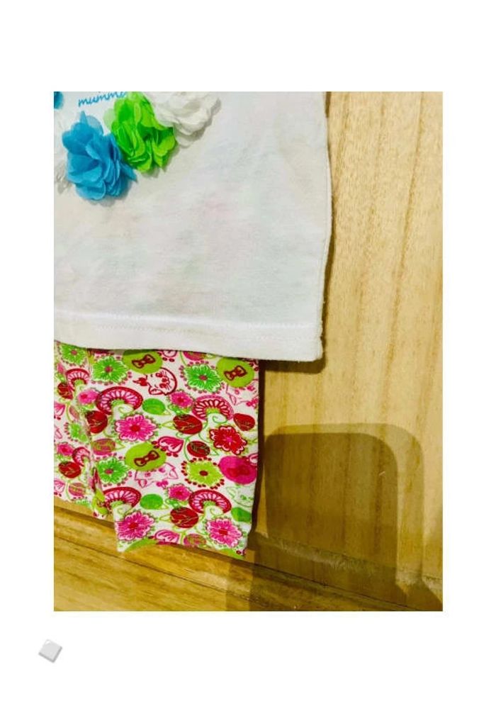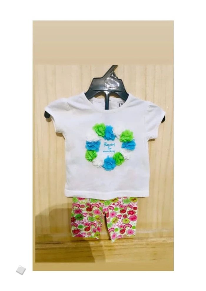 Ce n’est pas un ensemble à la base - t-shirt manches courtes, avec fleurs bleues, vertes et blanches - leggings fleurie rose/vert, Disney les Aristochats avec Marie en motif #jennyspearsbebefille3mois