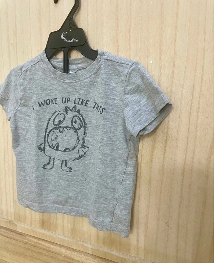 T-shirt manches courtes gris dessin petit monstre 92 cm - photo numéro 1