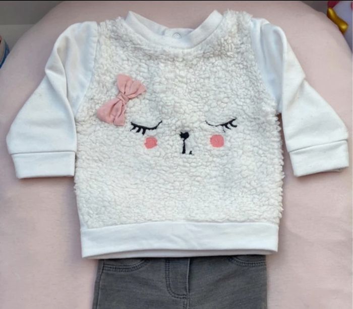 Pull blanc Pat et ripaton Sherpa sur le devant Taille 3 mois #natgo3mois #bébéfille #sherpa #pull #pullchaud #bebefille3mois