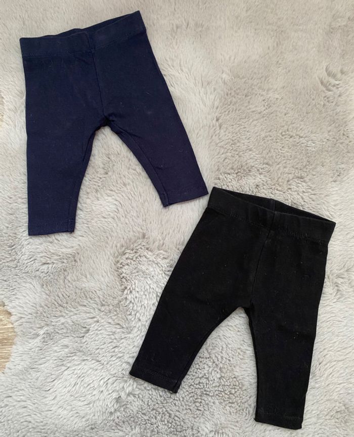 lot de 2 leggings Kiabi un noir et un marine Taille 3 mois soit 56-62 cm #lot #bébé #bébéfille #natgo3mois
