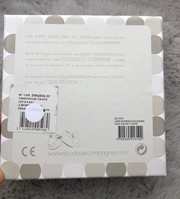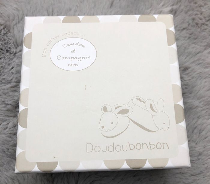 chaussons lapin avec grelot de couleur beige/ taupe Doudou et compagnie jamais portés Taille non indiquée sur la boîte #bébé #naissance #mixte