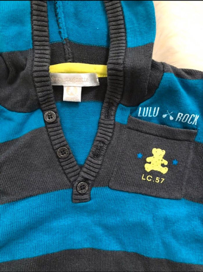 pull léger à capuche, Lulu Castagnette taille 12 mois #pull #bébé #garçon #bebegarcon #natgo12mois