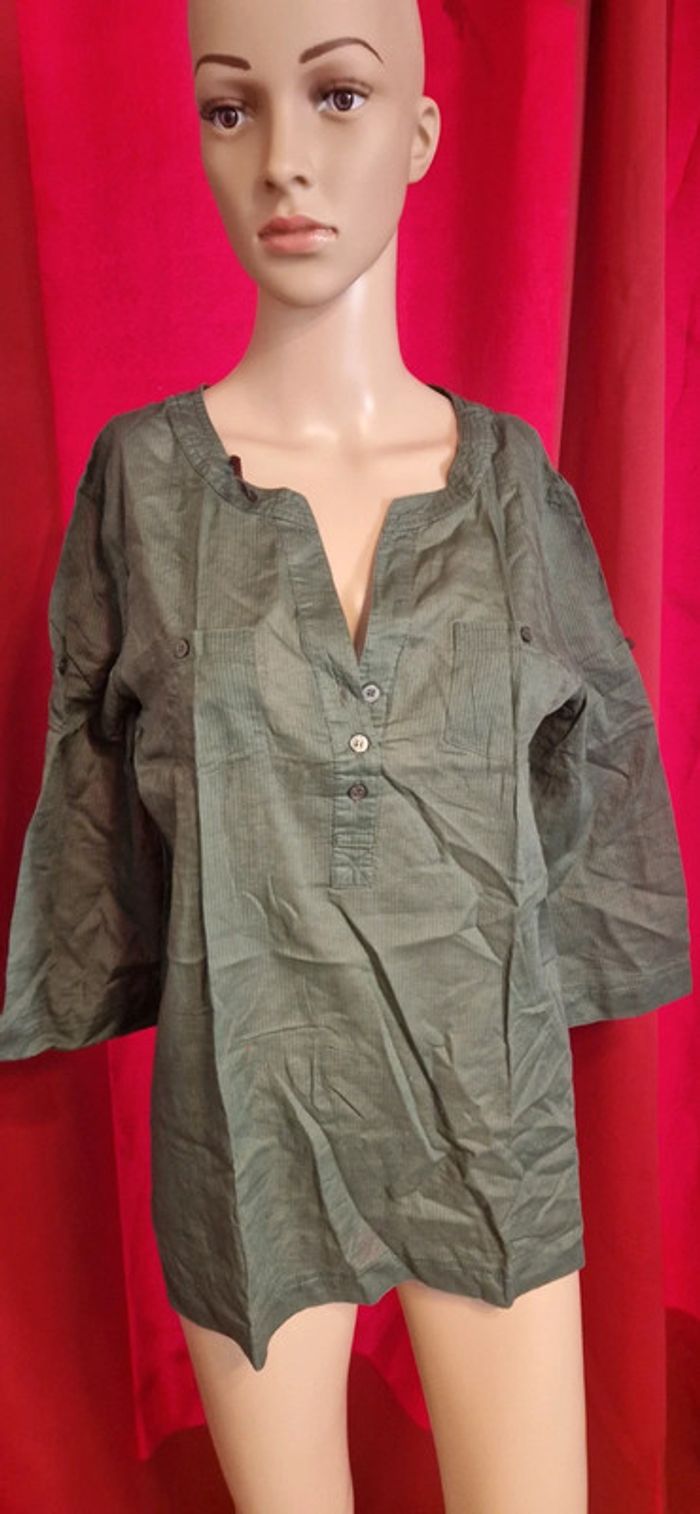 Très peu porté #taille38 #blouse #chemise #femme #kaki #vertkaki #etam #été #printemps #envoirapide #tresbonetat #manches3/4 #100%coton