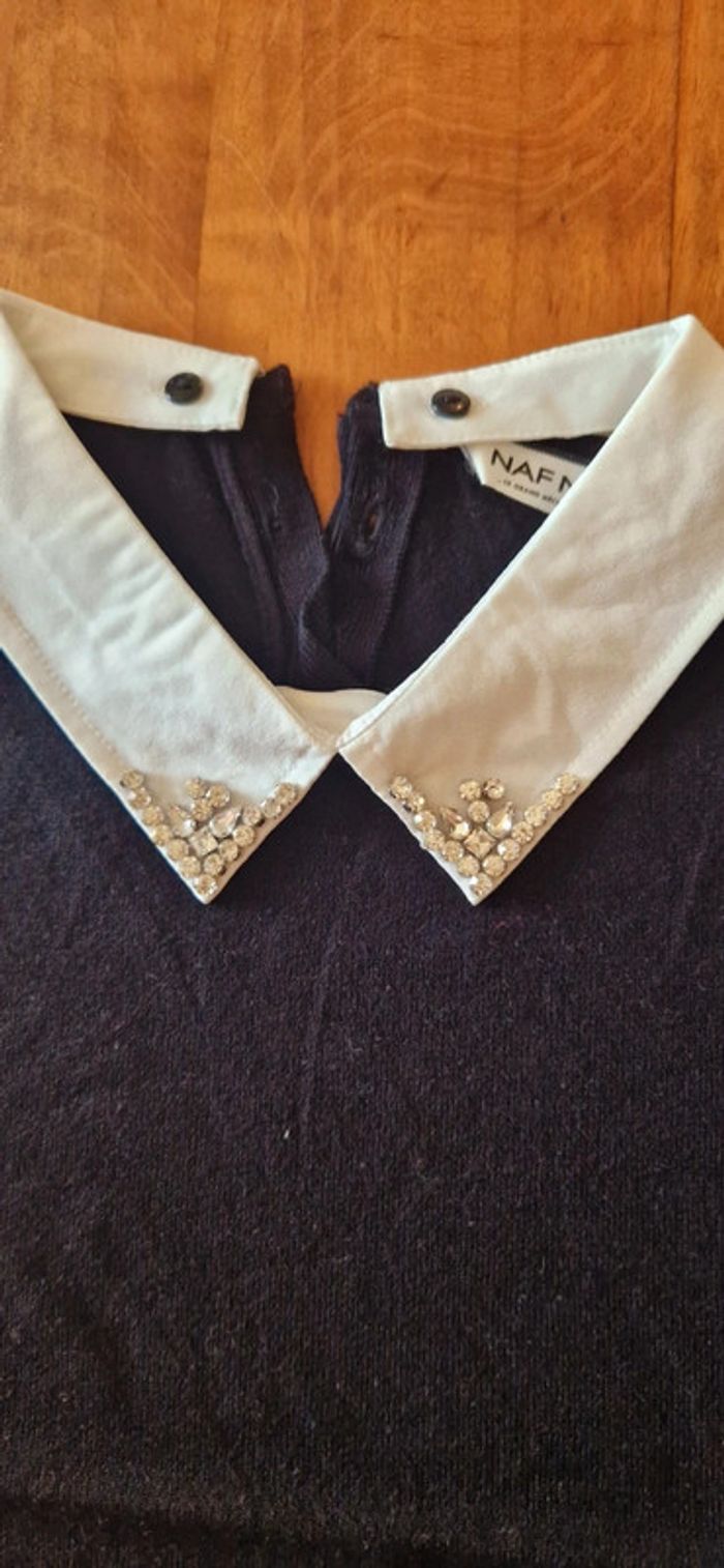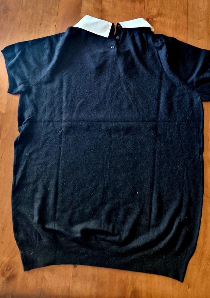 Pull manches courtes, col blanc avec strass - photo numéro 3