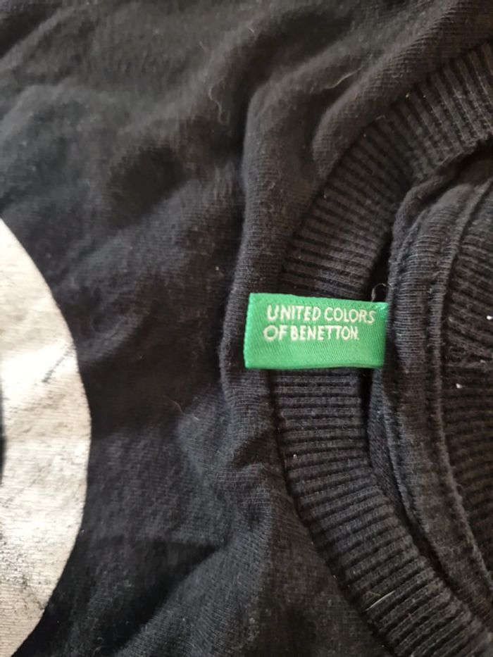 T-shirt noir united colors of benetton logo blanc à manche longue taille 11-12ans