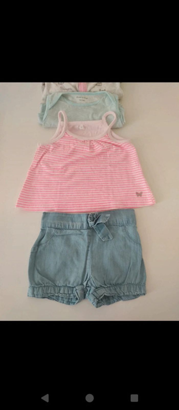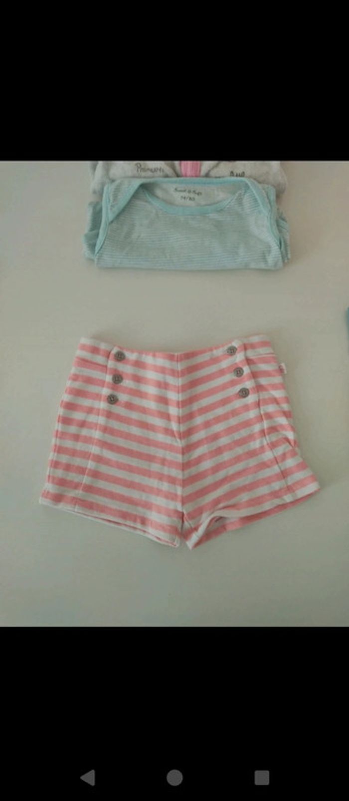 Lot fille taille 6/9 mois. Lot composé de 6 pièces -1 short en coton blanc et rose Okaïdi -1 short en jean léger sans marque -1tee shirt manches débardeur blanca rayures roses sans marque -1pyjama in extenso -1 body manches débardeur. Vendu a bas prix pour vider mais en très bon état. Les vêtements ont étés portés #soya91_habits6mois #soya91_habits9mois