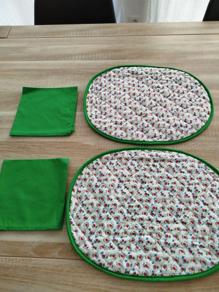 Set de table fleurie composé de deux set de table et deux serviettes vertes