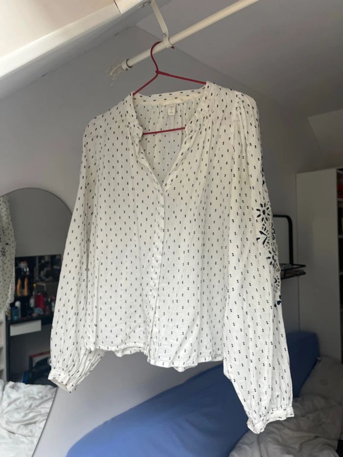 Blouse à pois avec détail sur les manches - photo numéro 1