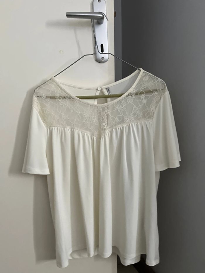 Blouse manches courtes avec détail en dentelle