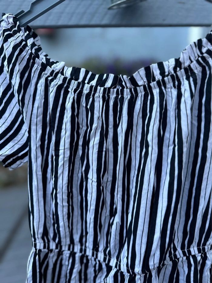 Robe fluide courte noir et blanche rayée Avec col élastique Porté 1 fois