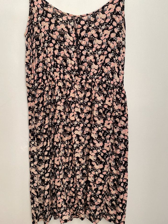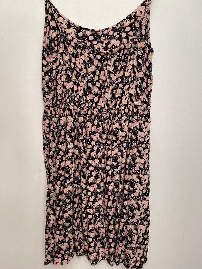 robe à fleurs rose et noir fluide à bretelles très bon état