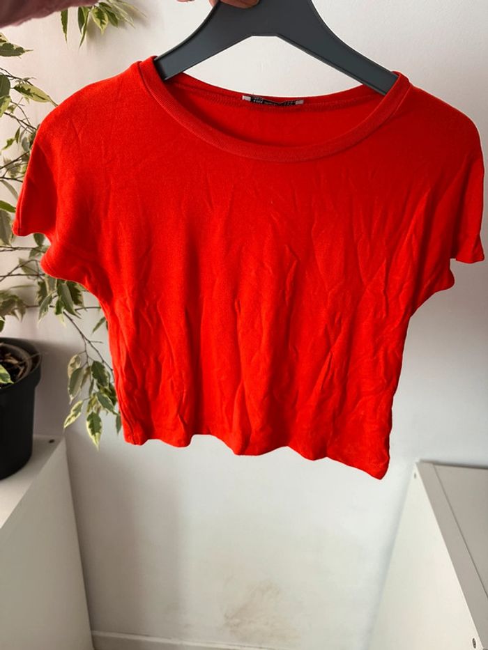 Haut court Zara orange rouge - photo numéro 1