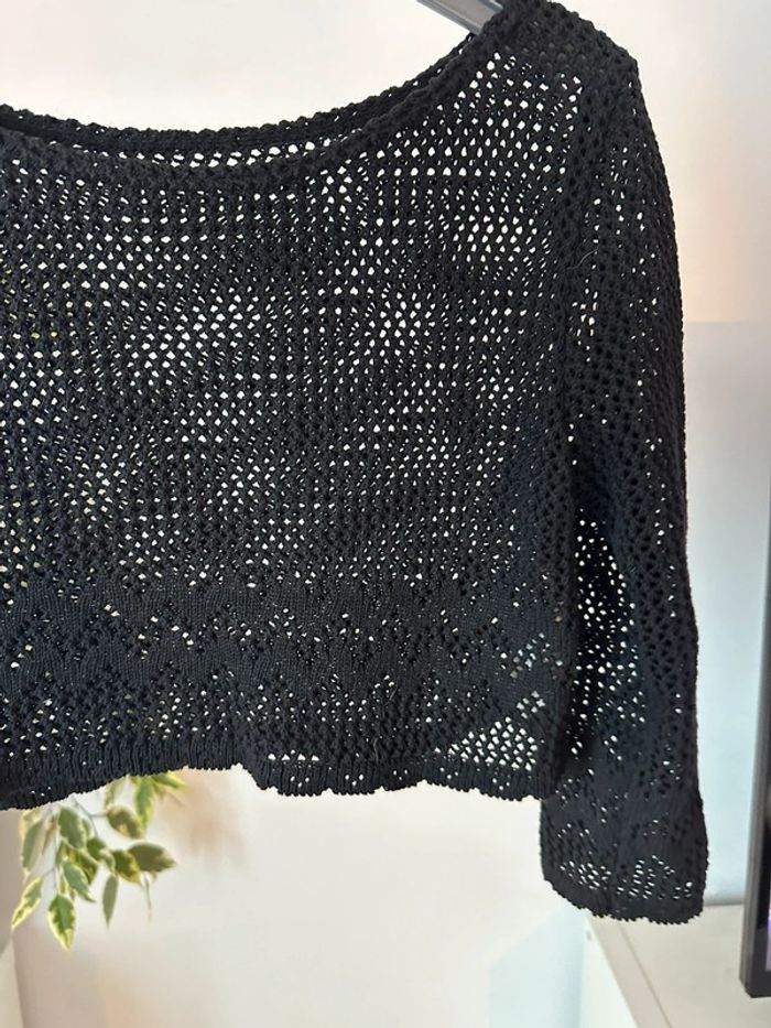 Crop top manches 3/4 noir crochet - photo numéro 1