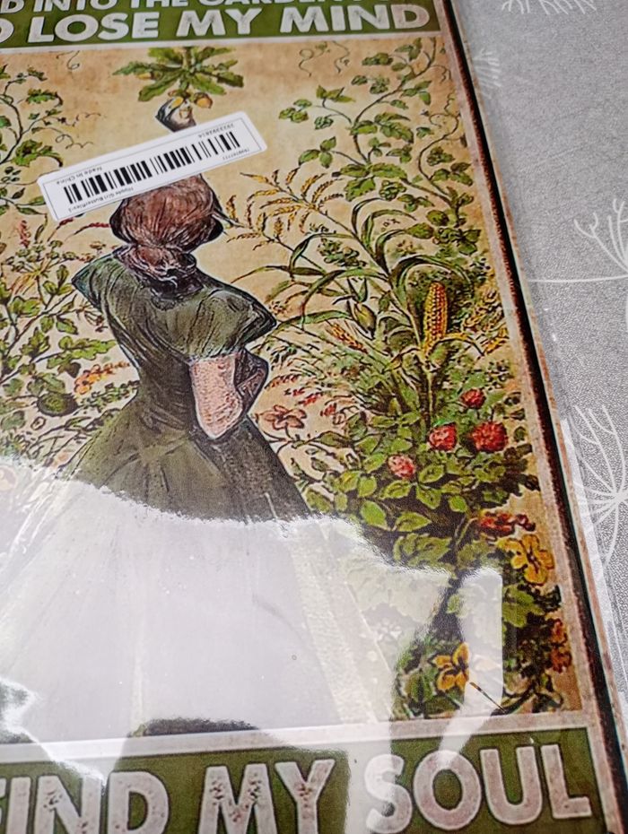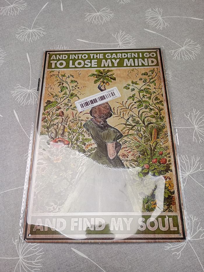 Plaque décorative en métal. Trous au quatre coins pour l'accrocher. Dimensions : 30 x 20 cm. Neuve