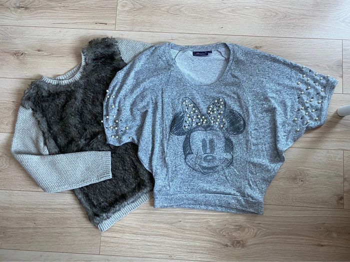 Lot de 2 pulls taille S: - beige doublé fourrure sur le torse Marque camaïeu - gris à l effigie de Minnie neuf jamais porté #liline60295femmeS #disney #minnie #camaieu