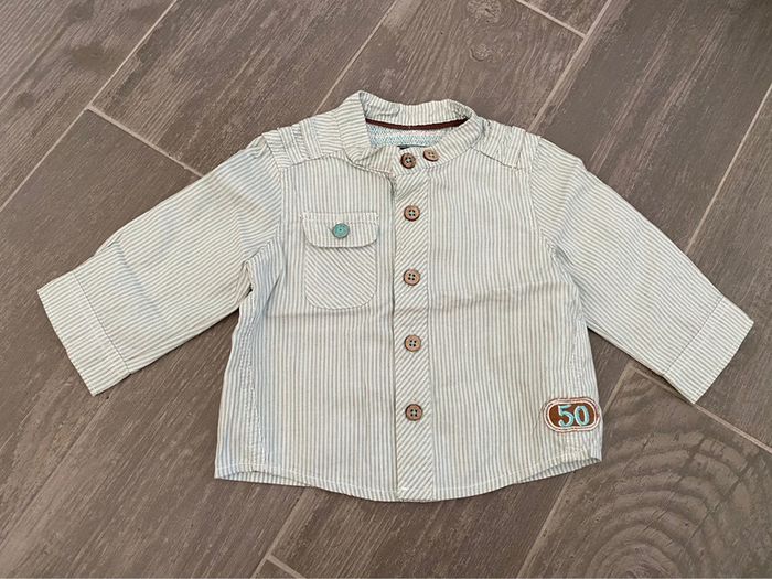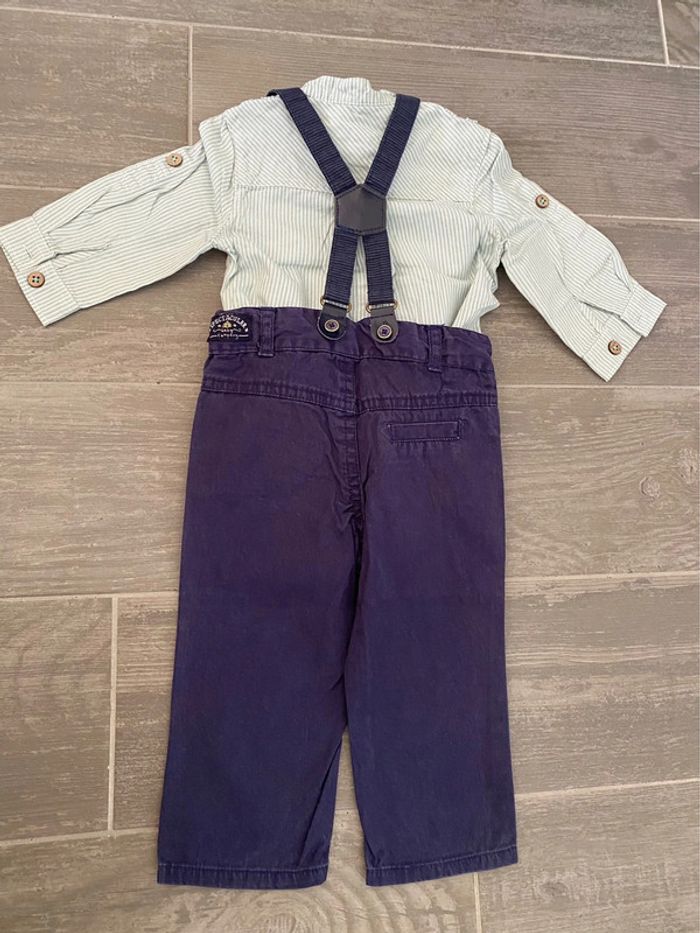 Ensemble contenant : Pantalon avec bretelles amovibles Chemise à rayure col Mao #liline60295bebegarçon6mois #liline60295tapeaoeil