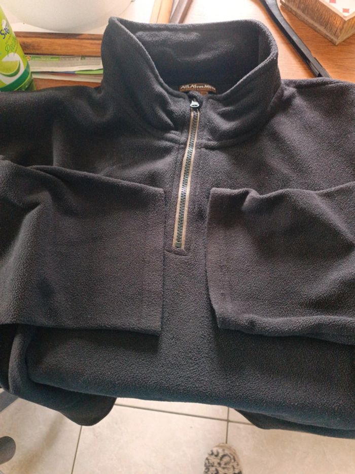 Sweat polaire zippé noir Atlas for MEN 5XL. Épaules 64 cm. Aisselles 78 cm. Longueur 80 cm. Manches longues 66 cm. 100% polyester. TBE