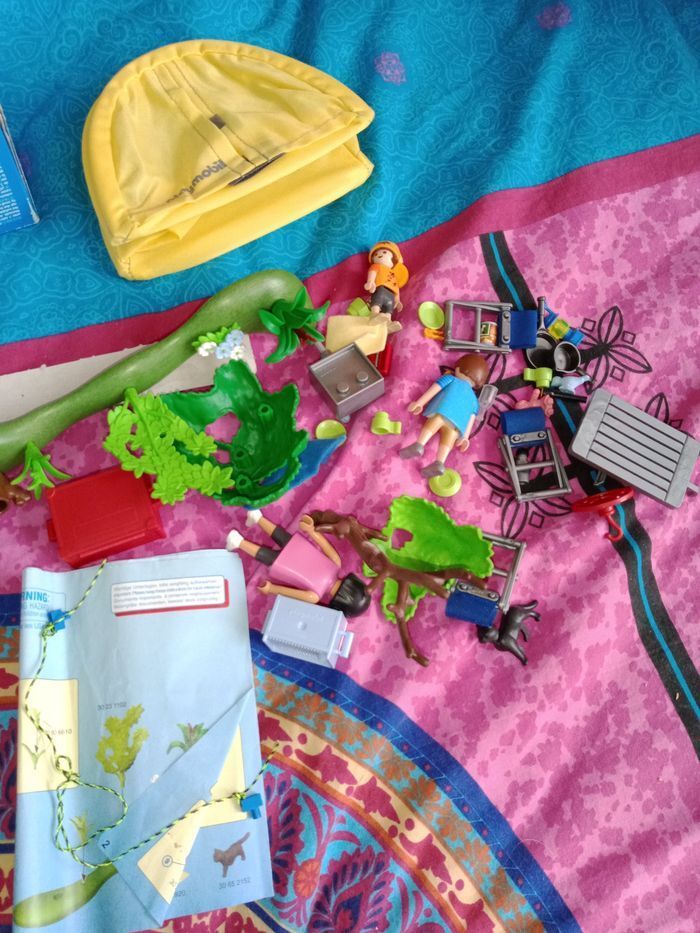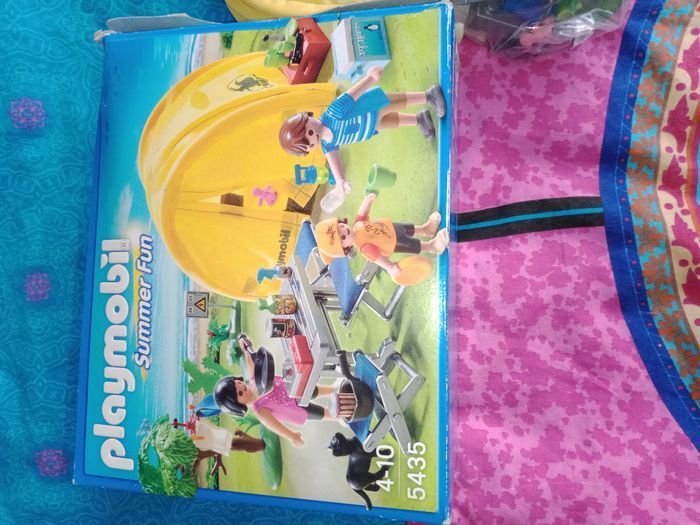 playmobil campement summer fun 5435 complet il y a bien les 3 assiettes boite en bon état.