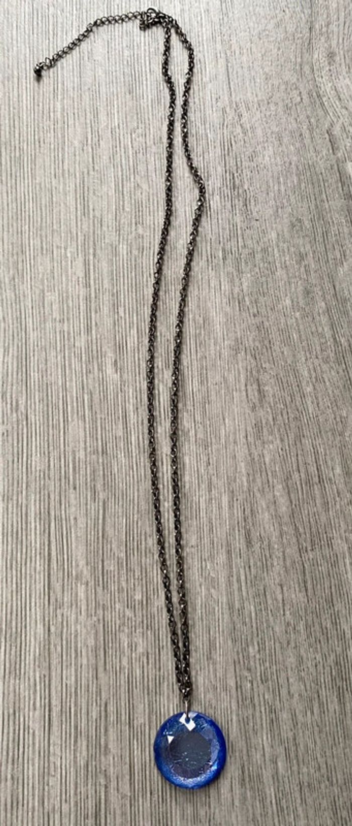 Sautoirs avec perle bleu effet craquer - photo numéro 1