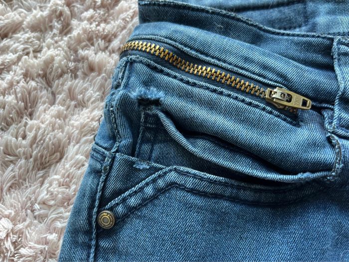 Quelques traces d’usures sur le jeans (voir photo 3/4) défaut de fabrication, il a été recousu peut donc encore être porté.